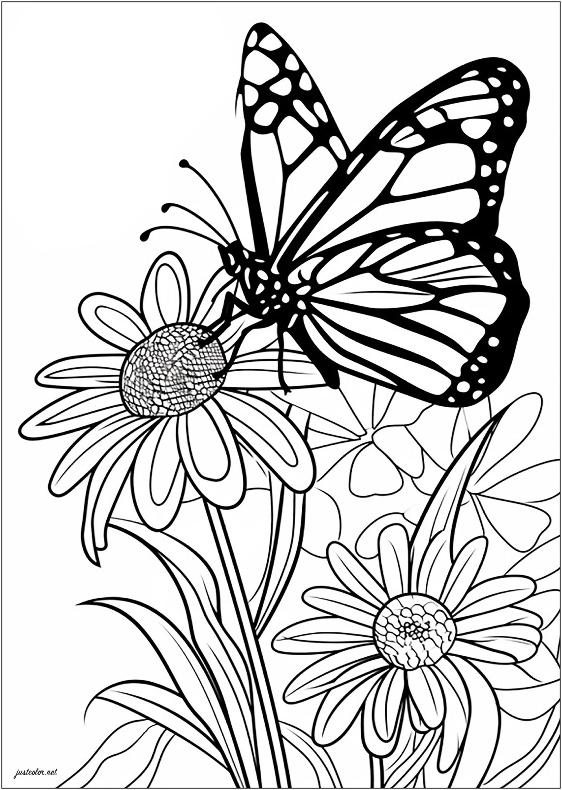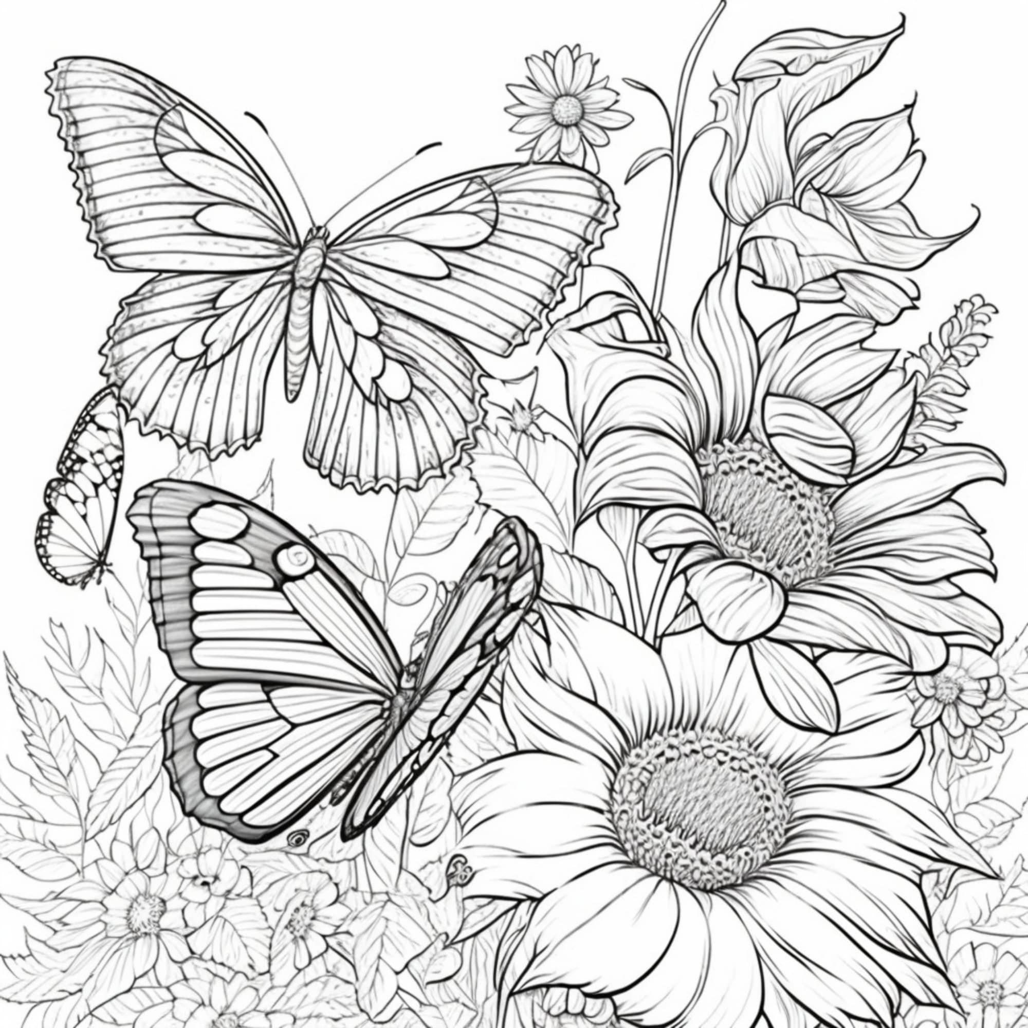 Butterflies are known for their vibrant colors and delicate wings, making them a popular subject for coloring pages. Pairing them with beautiful flowers adds an extra element of nature and beauty to the design, making it a soothing and enjoyable activity.
