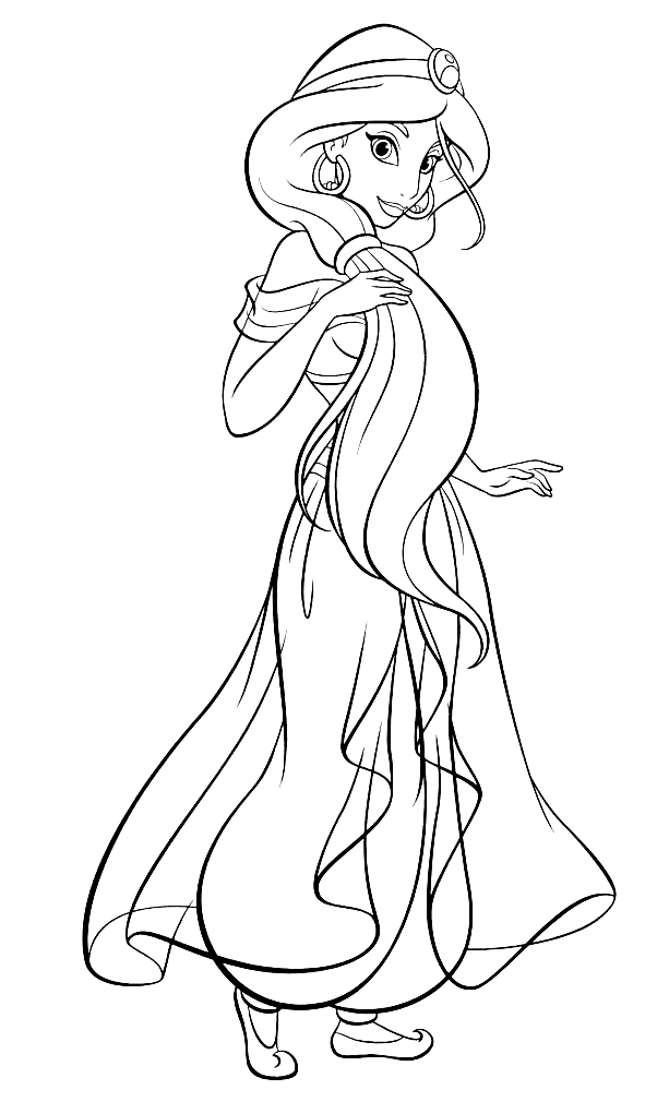 Disney Princess Jasmine From Aladdin Coloring Page Free Printable